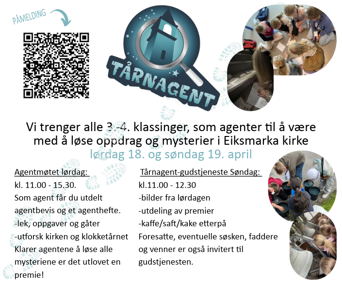 Vi trenger alle 3. og 4. klassinger, som agenter til å være med å løse oppdrag og mysterier i Eiksmarka kirke!